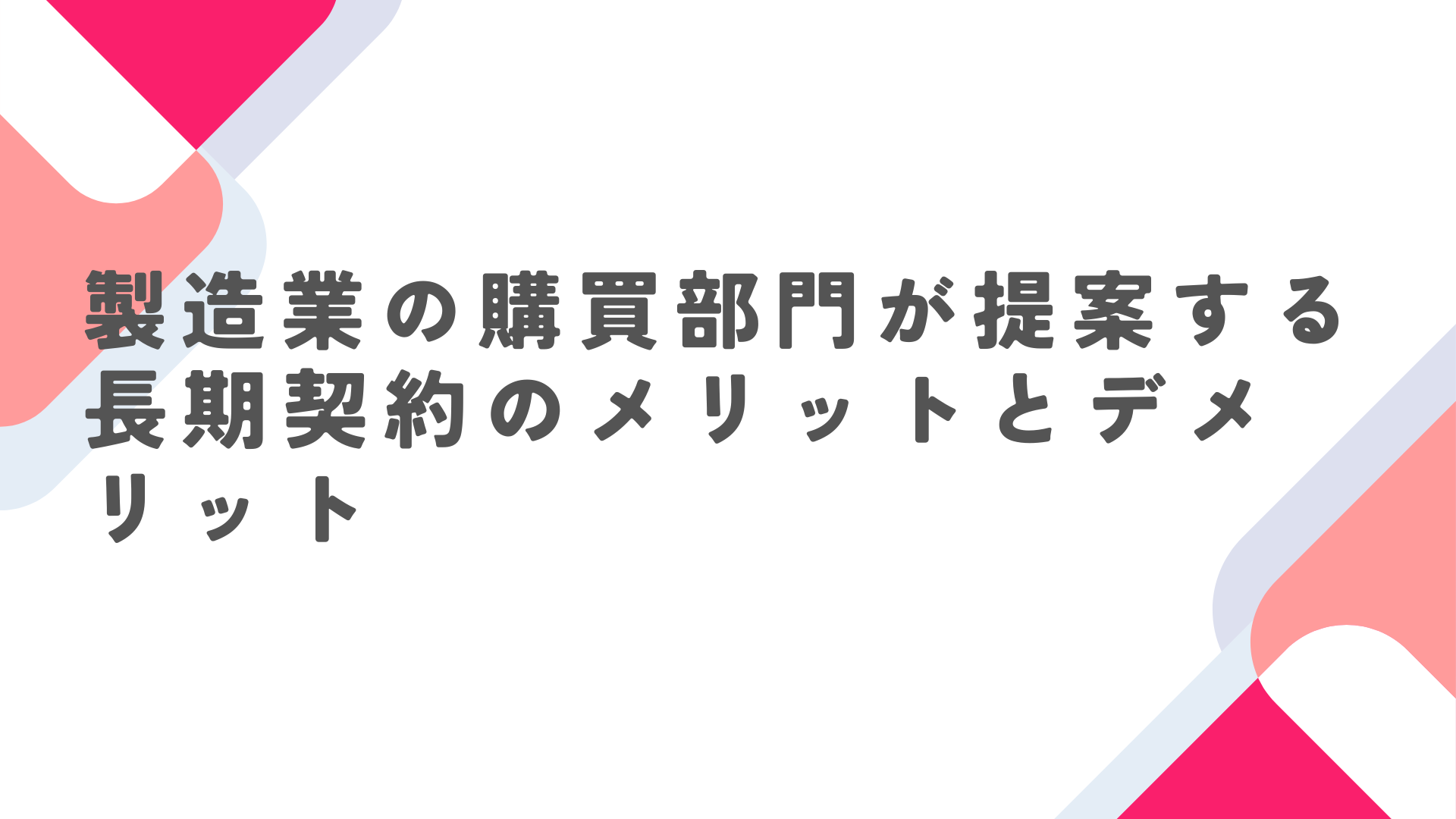 - 製造業の購買部門が提案する長期契約のメリットとデメリット