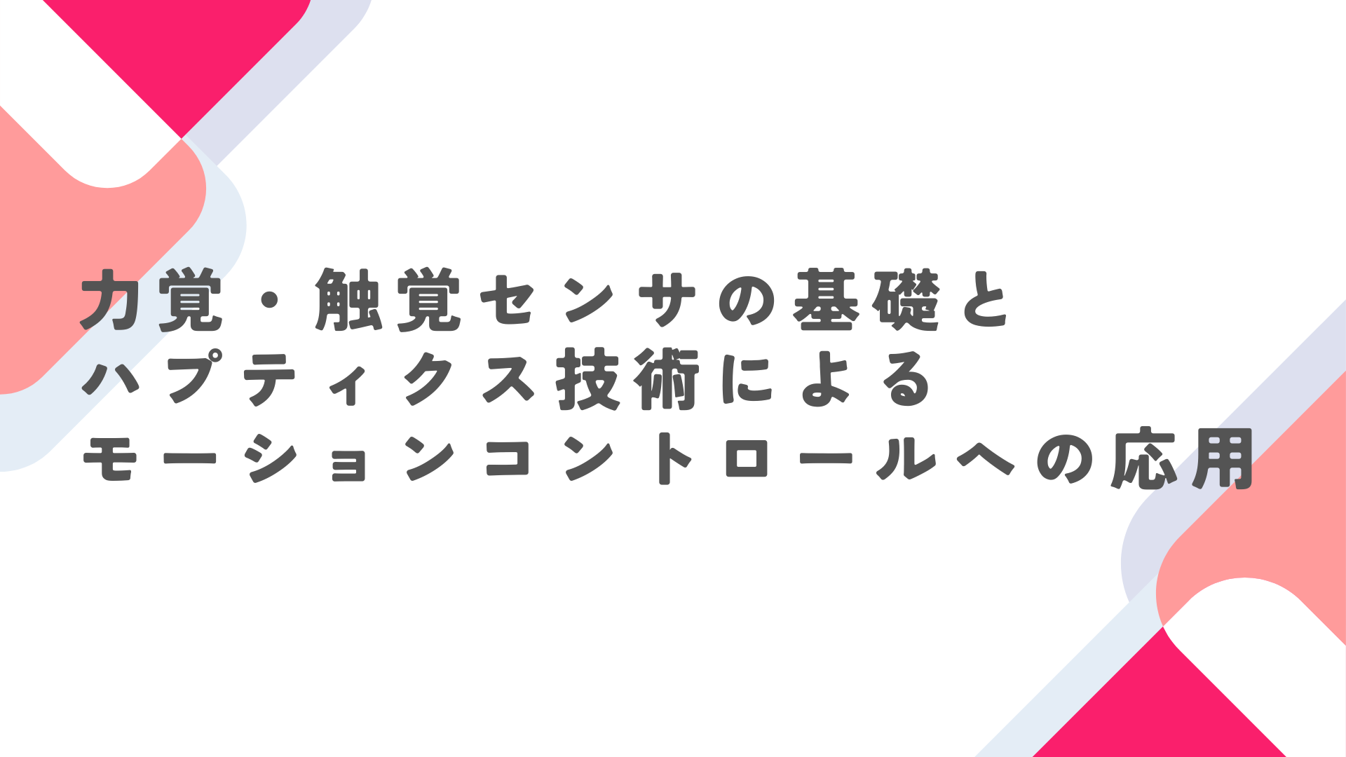 - 力覚・触覚センサの基礎とハプティクス技術によるモーションコントロールへの応用