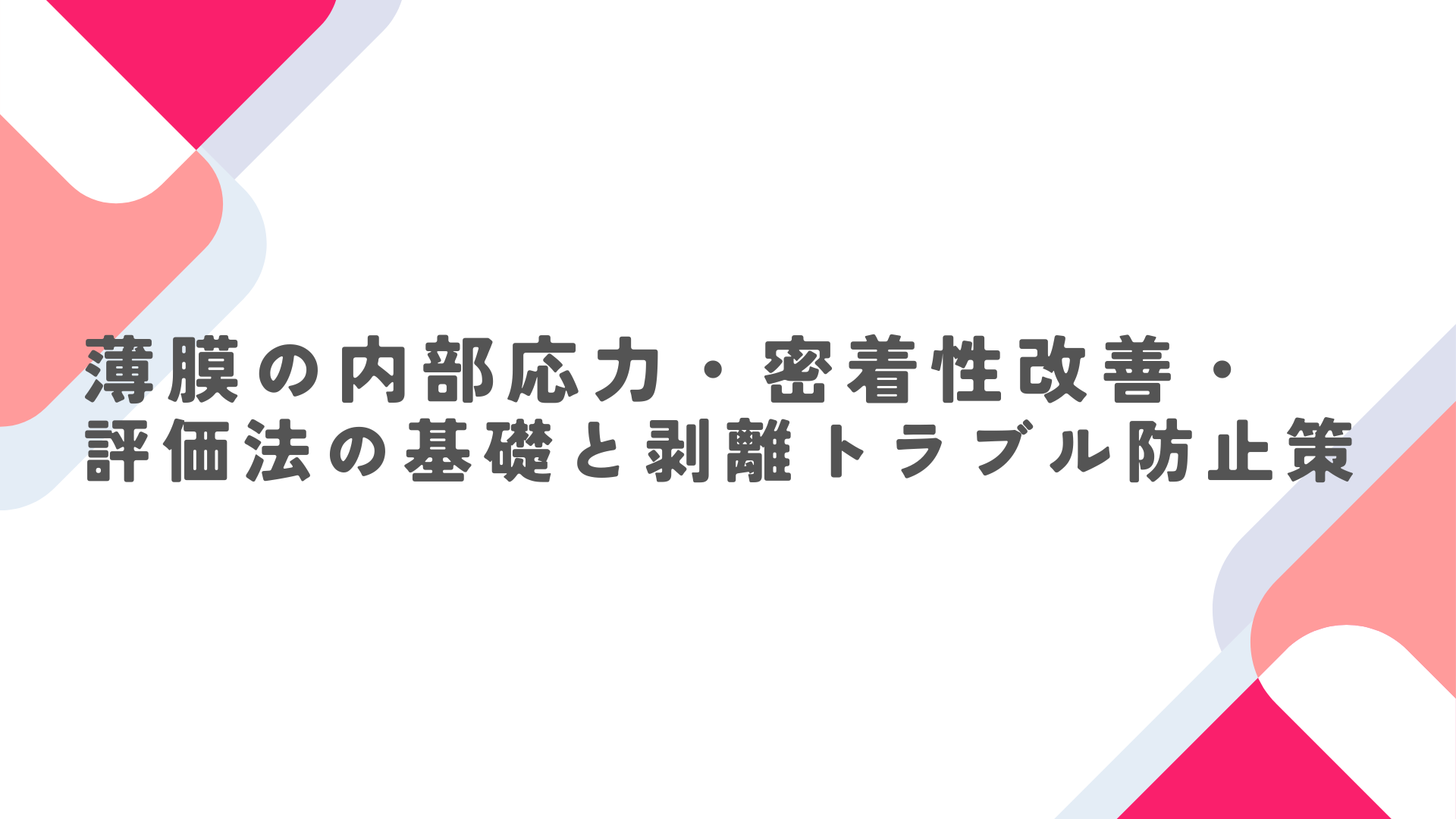 - 薄膜の内部応力・密着性改善・評価法の基礎と剥離トラブル防止策
