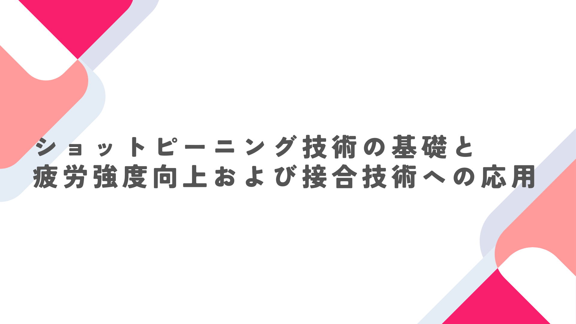 本記事では、ショットピーニングの基本原理から応用範囲、接合部への適用、表面改質技術としての効果まで、実践に役立つ知識を解説します。