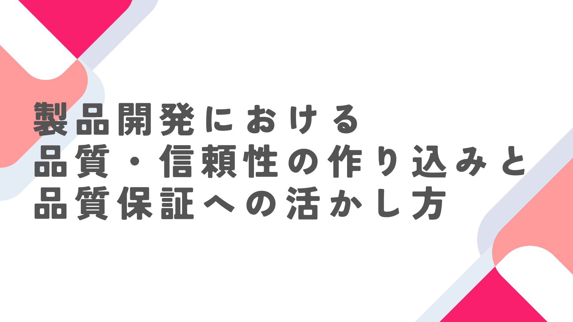 - 製品開発における品質・信頼性の作り込みと品質保証への活かし方