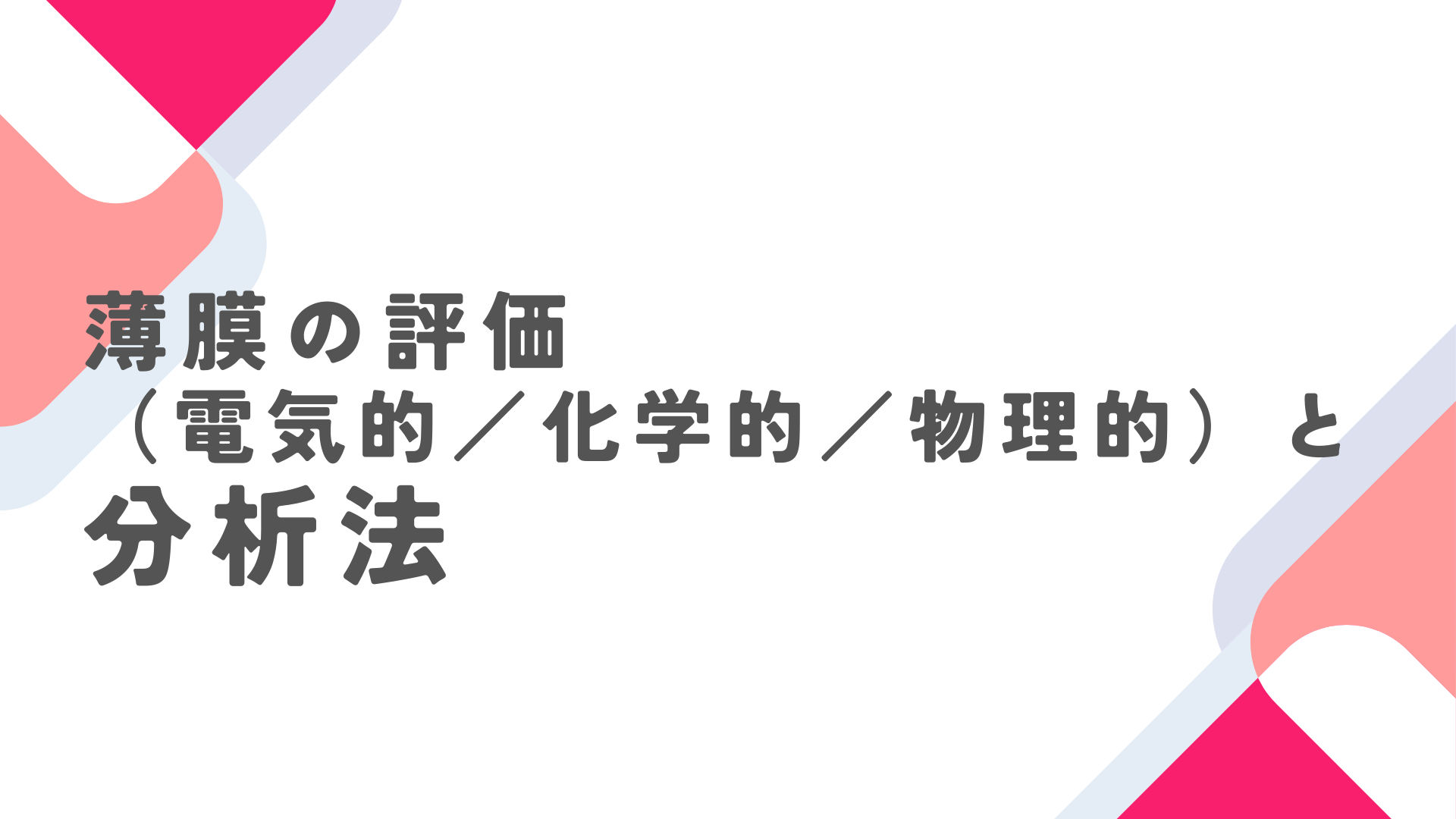 - ✔ 薄膜における電気的・化学的・物理的評価手法の基本