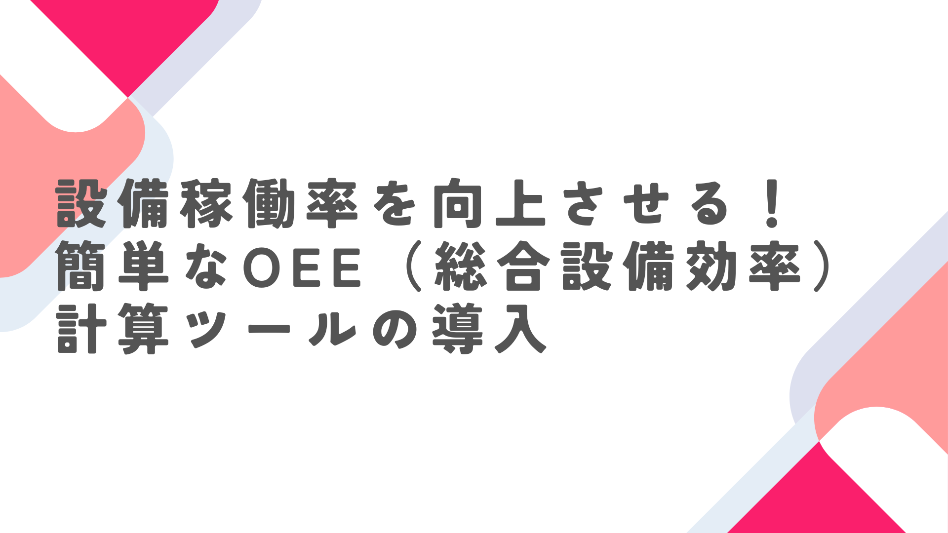 簡単な計算ツールを使って、稼働率・性能効率・品質率の課題を“見える化”し、現場改善に活かす実践ノウハウを紹介します。