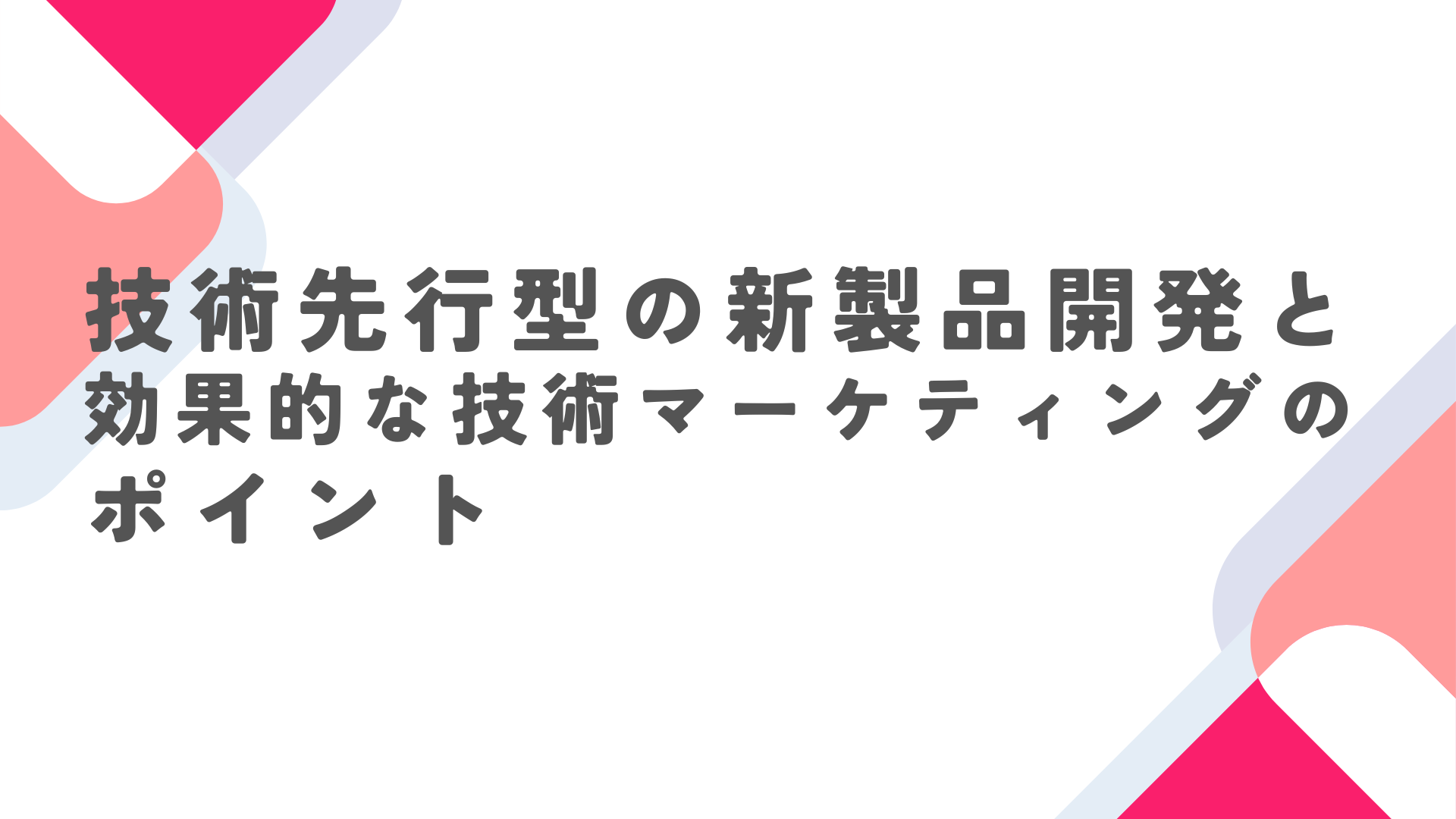 - 技術先行型の新製品開発と効果的な技術マーケティングのポイント